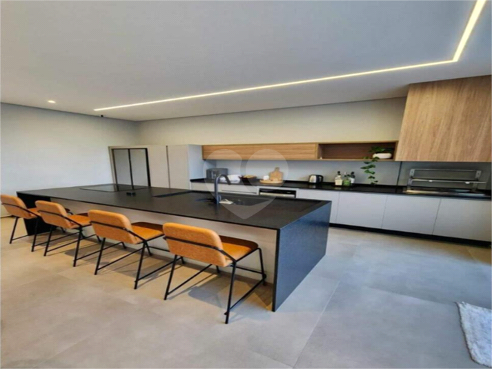 A cozinha é planejada e equipada com eletrodomésticos, integrada ao espaço gourmet com churrasqueira, criando um ambiente perfeito para momentos de convivência. O imóvel conta ainda com ar-condicionado na sala, cozinha e suíte master, além de persianas automatizadas que agregam praticidade e conforto.